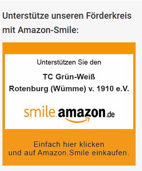 Ab sofort könnt ihr unseren Verein bei eurem Kauf über Amazon.Smile unterstützen. Ein Teil eurer Einkaufssumme wird dabei von Amazon dem Förderkreis unseres Clubs zurückerstattet. Diese Unterstützung ist für euch mit keinerlei Mehrkosten verbunden!