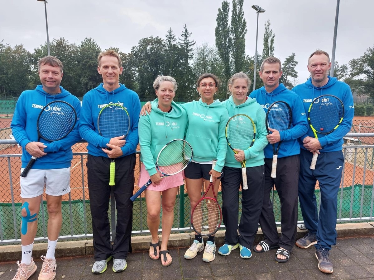 Cai und Lars gewannen das Herrendoppel klar mit 6:1 6:1, während Timo und Ute im Mixed-Doppel mit 5:7 6:2 unterlagen. Damit war nun das Damendoppel das Zünglein an der Waage und hier liefen Petra und Laura zur Höchstform auf. Ging der erste Satz noch knapp mit 6:7 verloren, wurden die beiden im Laufe des Matches immer stärker. Mit 6:7 6:2 10:5 besiegelten sie den Gesamtsieg für den TNB, der mit dem Aufstieg in die Gruppe B gekrönt wurde.