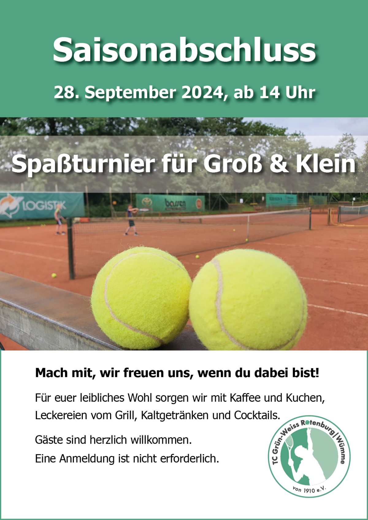 Das Event findet am 28. September 2024 ab 14 Uhr auf unserer Clubanlage statt. Teilnehmen können alle Mitglieder – egal ob groß oder klein, Anfänger oder erfahrene Clubspieler. Hier steht der gemeinsame Spaß am Sport im Vordergrund, nicht der Wettkampf. 😊